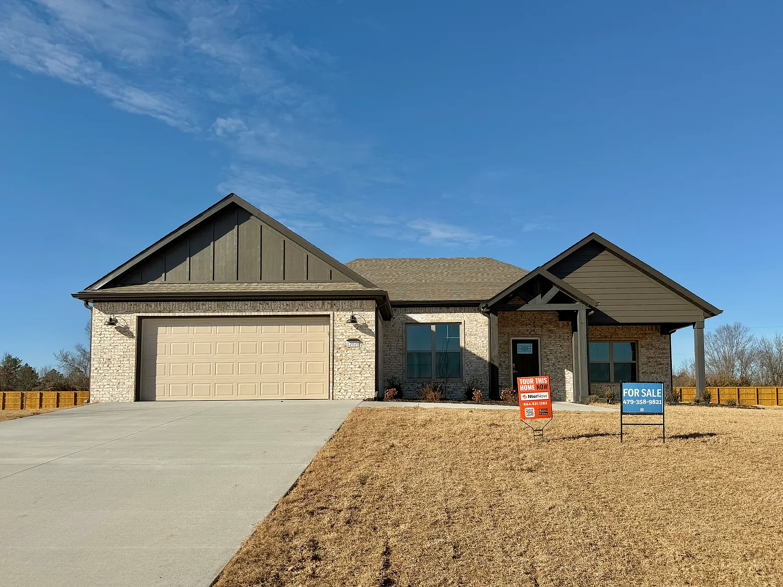 Welcome to Saddle Hill Estates in Rogers, AR! This captivating Ridgdale Plan offers 3 bedrooms, 2 bathrooms, with a Study and a generous 1948 sqft of living space, thoughtfully designed to provide the perfect blend of elegance and practicality. This home features high-end countertops and custom cabinetry, elevating the style and functionality throughout. The pantry offers ample storage space for all your essentials, ensuring a well-organized and clutter-free kitchen. Indulge in the luxury of a separate shower and tub in the master suite, providing a serene retreat where you can unwind and rejuvenate in peace. Enjoy an abundance of natural lighting that fills the home, creating a bright and cheerful atmosphere that welcomes you with warmth. Cozy up to the gas fireplace, adding warmth and charm to the living area, creating a perfect space to create cherished memories during colder evenings. The open-concept layout embraces the living room, dining space, and kitchen, creating a seamless flow that fosters a warm and welcoming atmosphere. This space is perfect for hosting gatherings, entertaining friends, or enjoying quality time with loved ones. Step outside to the inviting, over-sized back patio, where you can enjoy the beautiful surroundings and create lasting memories with family and friends during outdoor gatherings and barbecues